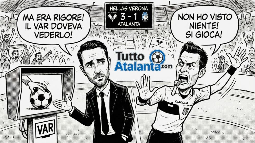 Ritorna l'appuntamento con la satira di TuttoAtalanta.com. La matita graffiante fotografa il momento chiave del Bentegodi: la rabbia del tecnico nerazzurro contro la "cecità" arbitrale in una giornata da dimenticare. Dalle stelle di una settimana perfetta alle stalle di un pomeriggio da dimenticare al Bentegodi. L'Atalanta di Raffaele Palladino incappa in una caduta rovinosa contro l'Hellas Verona, un 3-1 che interrompe bruscamente la striscia positiva e riapre interrogativi sulla continuità mentale del gruppo.