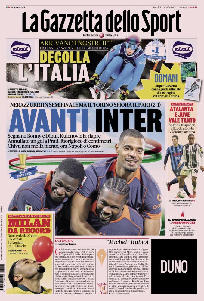 OLIMPIADI - Decolla l'Italia - Grande attesa per l'inizio dei Giochi di Milano-Cortina (domani la cerimonia). Franzoni velocissimo in prova accende le speranze azzurre. In edicola domani una guida speciale di 130 pagine.