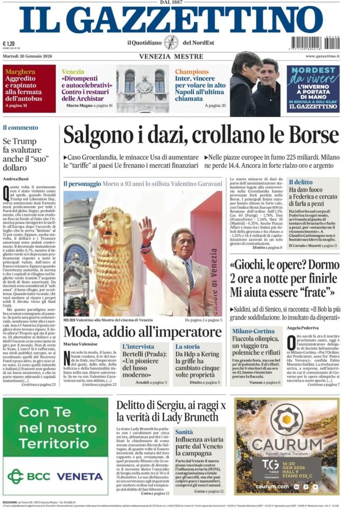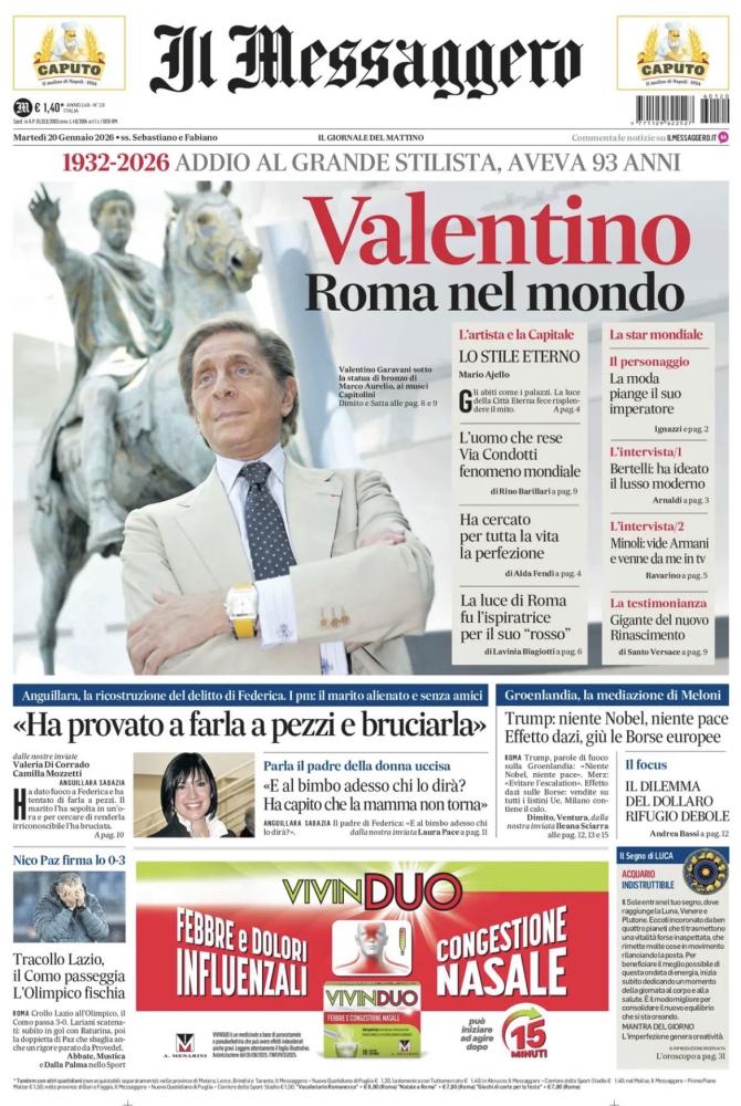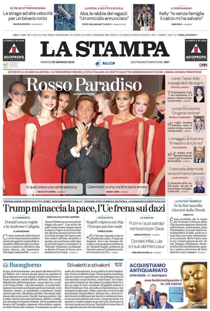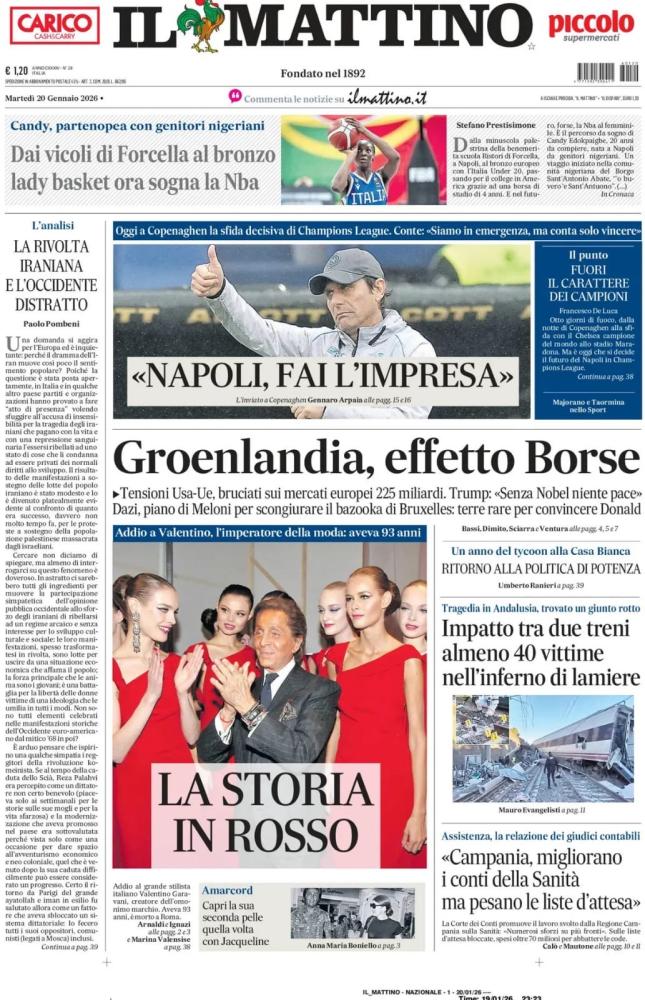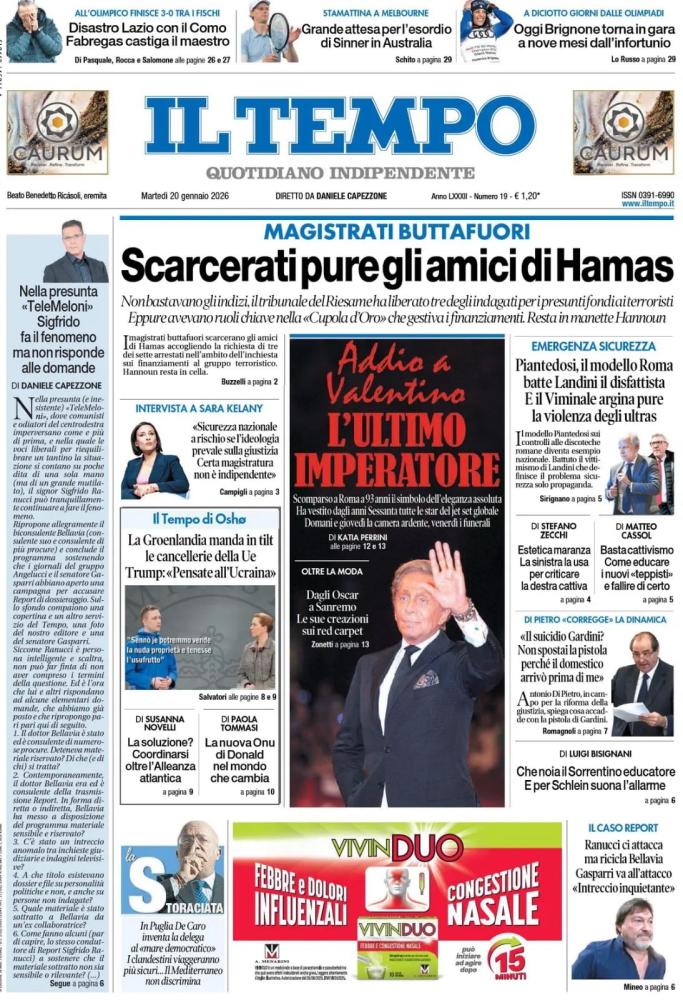 Le prime pagine dei quotidiani italiani e stranieri di oggi, martedì 20 gennaio