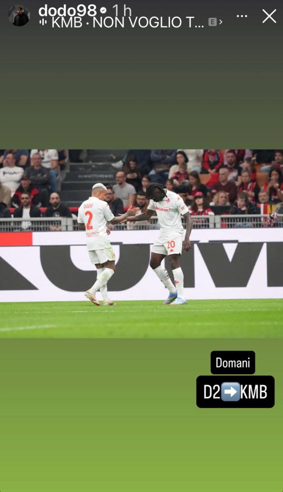 Dodo è sicuro: domani Kean sarà in campo insieme a lui. E' questo l'indizio del brasiliano sui social che posta una foto che sa di amarcord e profezia. La foto postata su Instagram si riferisce alla gara della scorsa stagione proprio contro il Milan, con l'assist di Dodo per il gol di Kean. Quasi una promessa dunque al centravanti viola.