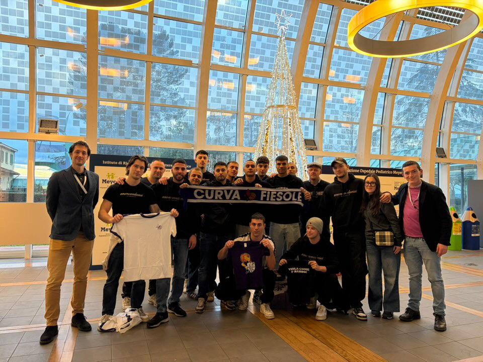 Visita speciale questa mattina per i piccoli pazienti dell’ospedale pediatrico Meyer di Firenze: una delegazione della Curva Fiesole, per il terzo anno consecutivo sempre nei giorni che precedono il Natale, ha infatti fatto visita ai bambini ricoverati che saranno costretti a passare le festività in ospedale, portando a loro e agli infermieri presenti tanti doni viola. Un gesto straordinario che spiega bene quale sia il legame della Curva con la città di Firenze, i valori che essa tramanda - al di là degli spalti del Franchi - e il rapporto con un’eccellenza come l’ospedale pediatrico del capoluogo toscano.