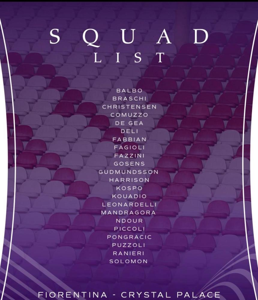 Fiorentina-Crystal Palace, i convocati viola: nessuna sorpresa e tanti baby