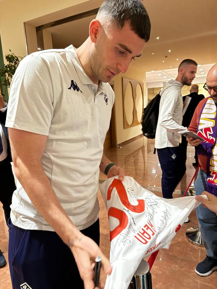 Stasera il settore ospiti del Via del Mare stasera rimarrà vuoto: è ormai triste abitudine per la Fiorentina, punita a fine gennaio da un provvedimento del Ministero dell'Interno che ha vietato fino al termine della stagione le trasferte ai tifosi viola residenti nella provincia di Firenze e chiuso i settori dedicati in questione -la misura era stata adottata dopo i gravi scontri del 18 gennaio scorso sull’autostrada A1, nei pressi di Casalecchio del Reno, quando circa trecento sostenitori viola e della Roma si erano affrontati mentre erano diretti verso diverse trasferte di campionato, bloccando il traffico e mettendo a rischio anche altri automobilisti -. Il cuore caldo del tifo gigliato ha cercato comunque di essere accanto alla squadra a poche ore da una sfida cruciale per la salvezza: ieri sera, alla vigilia di Lecce-Fiorentina, il Viola Club Puglia ha infatti fatto visita all'albergo in cui è in ritiro il gruppo di Paolo Vanoli per un momento di condivisione tra squadra e tifosi. Foto, sorrisi e autografi, con Roberto Piccoli e Luca Ranieri tra i protagonisti.