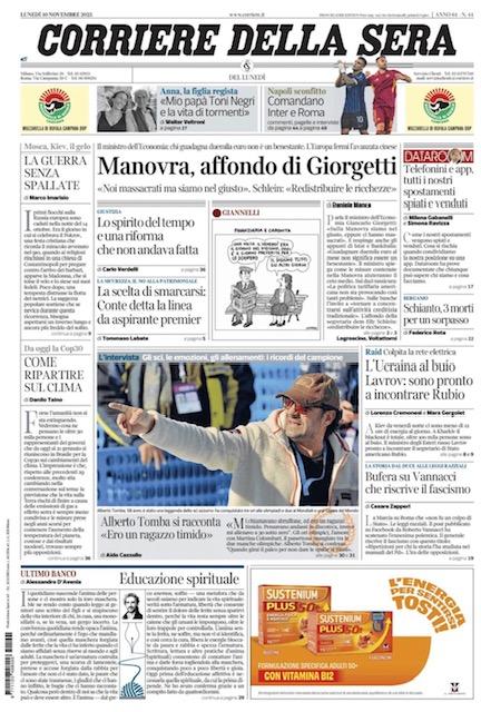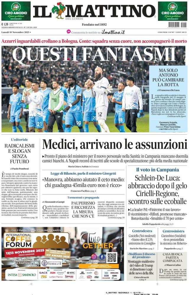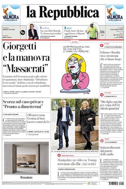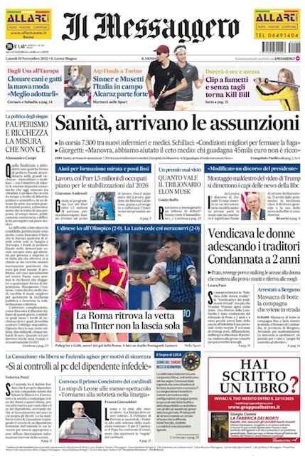 Le principali aperture dei quotidiani italiani di lunedì 10 novembre 2025