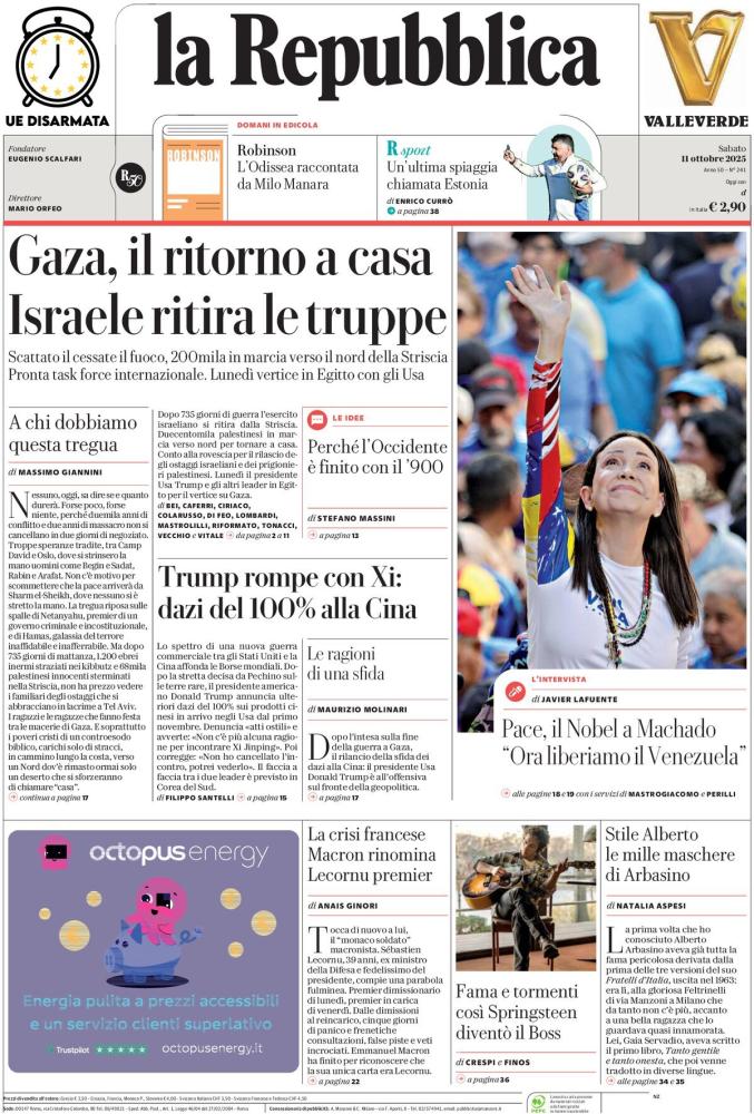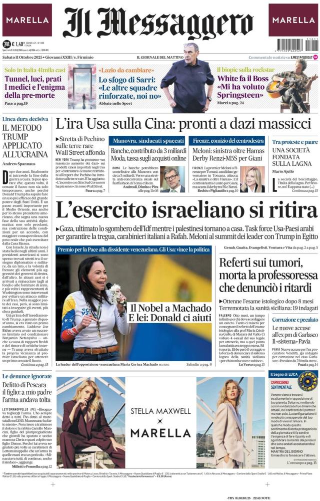 Le prime pagine dei quotidiani italiani e stranieri di oggi, sabato 11 ottobre