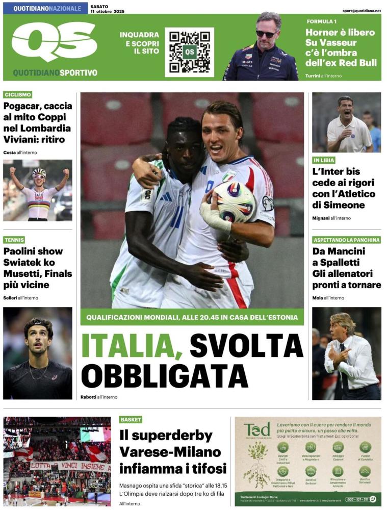 Grande spazio alla Nazionale sulle prime pagine dei quotidiani in edicola quest'oggi, sabato 11 ottobre 2025, e che vi proponiamo in calce. Riparte la corsa Mondiale degli Azzurri guidati da Rino Gattuso con un occhio attento a ciò che succederà nella sfida tra Norvegia e Israele.