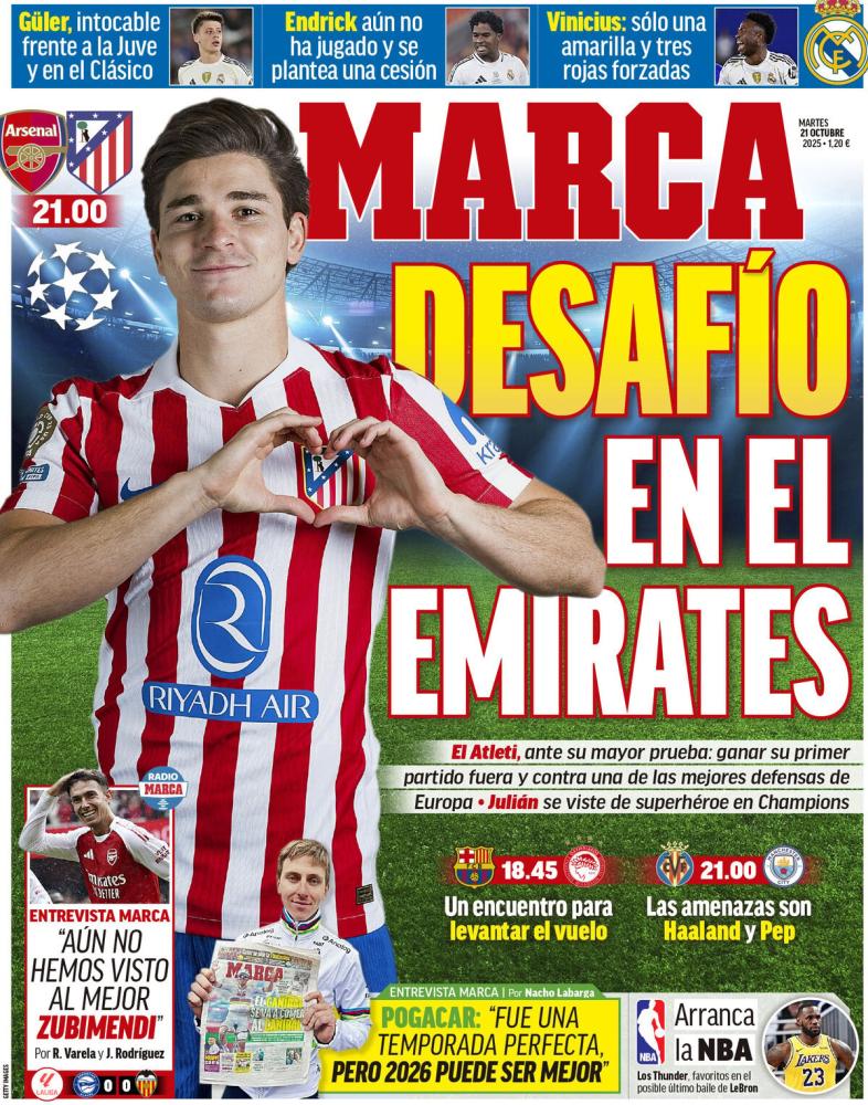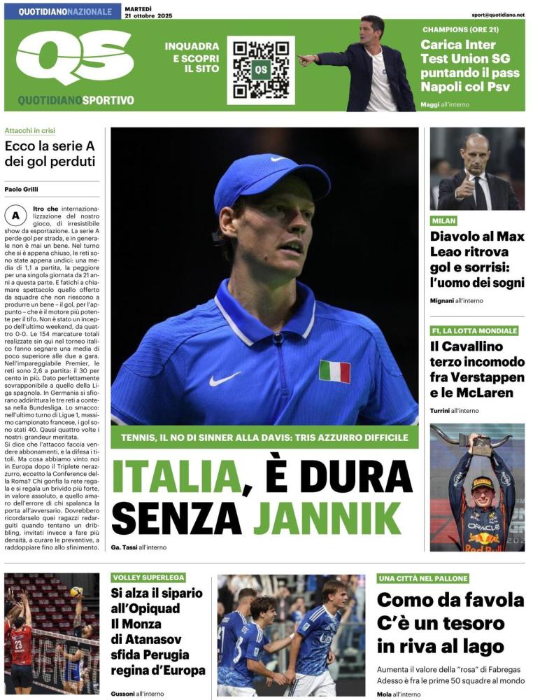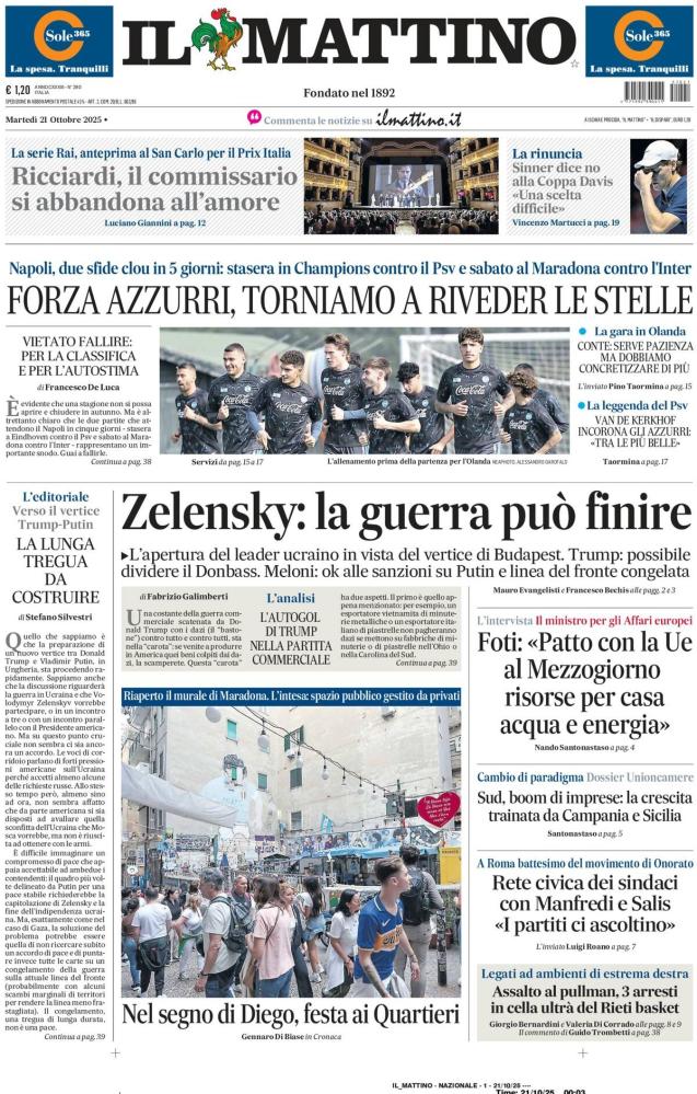 Tempo di Champions League, infatti i principali quotidiani sportivi nazionali propongono il tema nelle prime pagine di oggi, martedì 21 ottobre. Inter e Napoli questa sera sui campi dell'Union SG e del PSV Eindhoven.