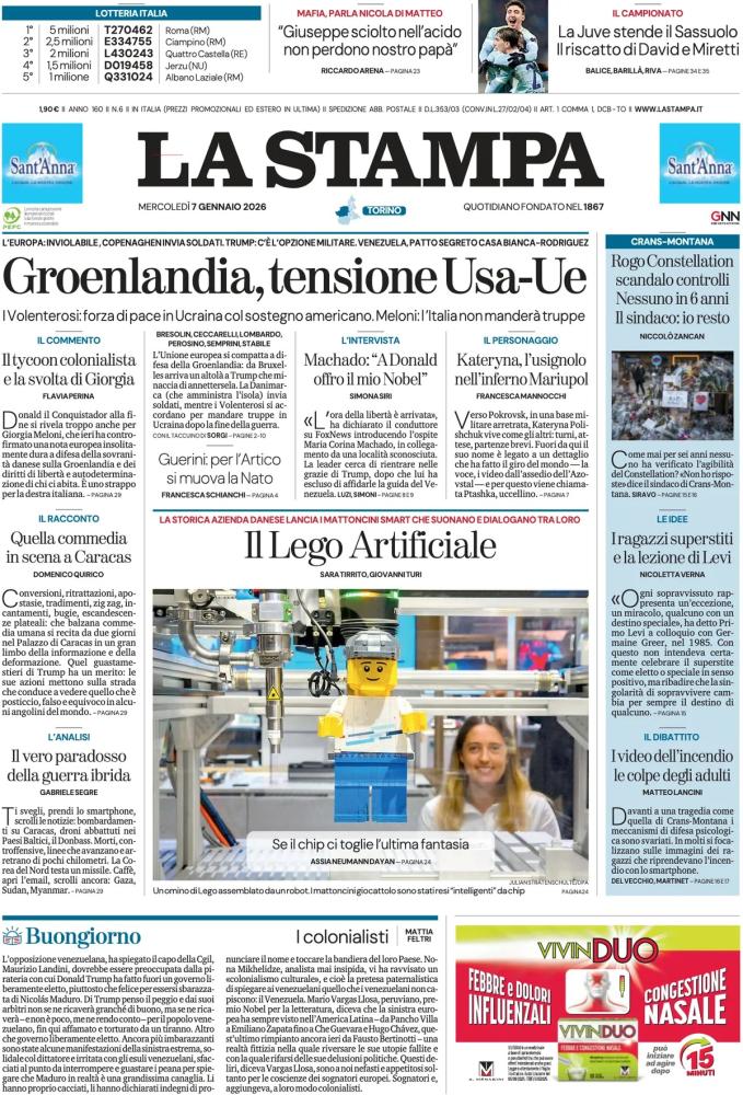 Le prime pagine dei quotidiani italiani e stranieri di oggi, mercoledì 7 gennaioTUTTO mercato WEB