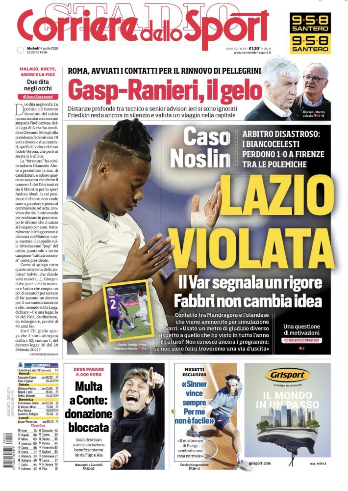 Il Corriere dello Sport: "Lazio violata! Caso Noslin: arbitro disastroso"