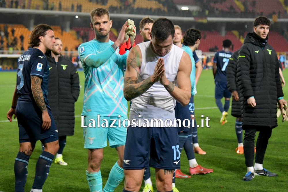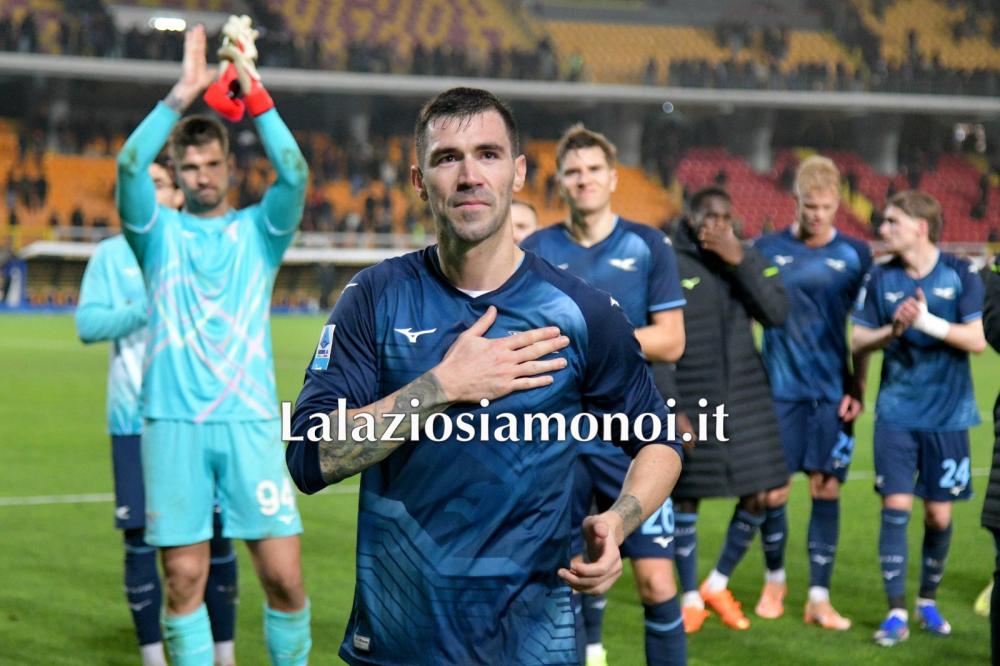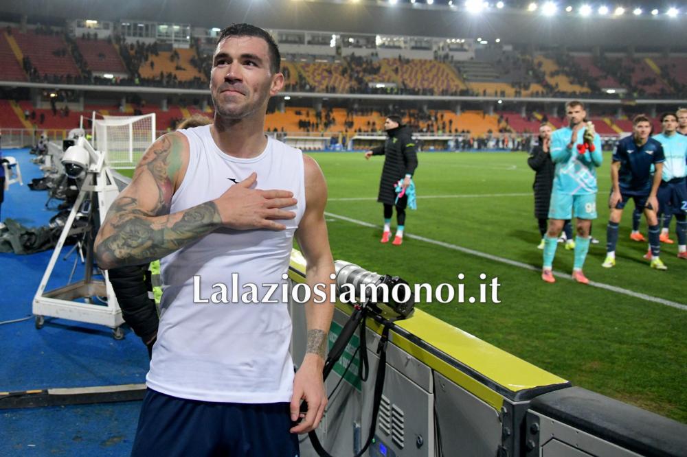 Il numero 13 biancoceleste ha giocato a Lecce dopo una settimana difficile e ha guidato la difesa delle aquile verso l'undicesimo clean sheet stagionale. Al termine del match il calciatore è andato sotto il settore riservato ai tifosi biancocelesti e ha salutato tutti visibilmente commosso con la mano sul cuore. Un atteggiamento che sembra ufficializzare l'addio un po' come accaduto qualche giorno fa con Matteo Guendouzi all'Olimpico dopo Lazio - Fiorentina.