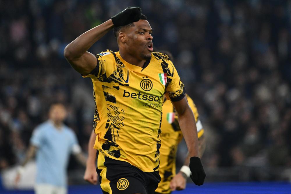 Dc Roma 16/12/2024 - campionato di calcio Serie A / Lazio-Inter / foto Domenico Cippitelli/Image Sport nella foto: esultanza gol Denzel Dumfries