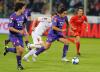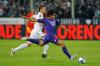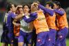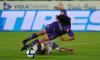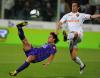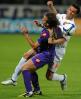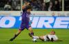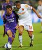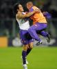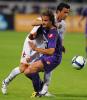 Firenze, campionato italiano di calcio di serie A 2008/2009: A.C.F. Fiorentina vs Roma 4 : 1, giocata allo stadio Artemio Franchi, nella foto: Franco Semioli contrastato da John Arne Riise.