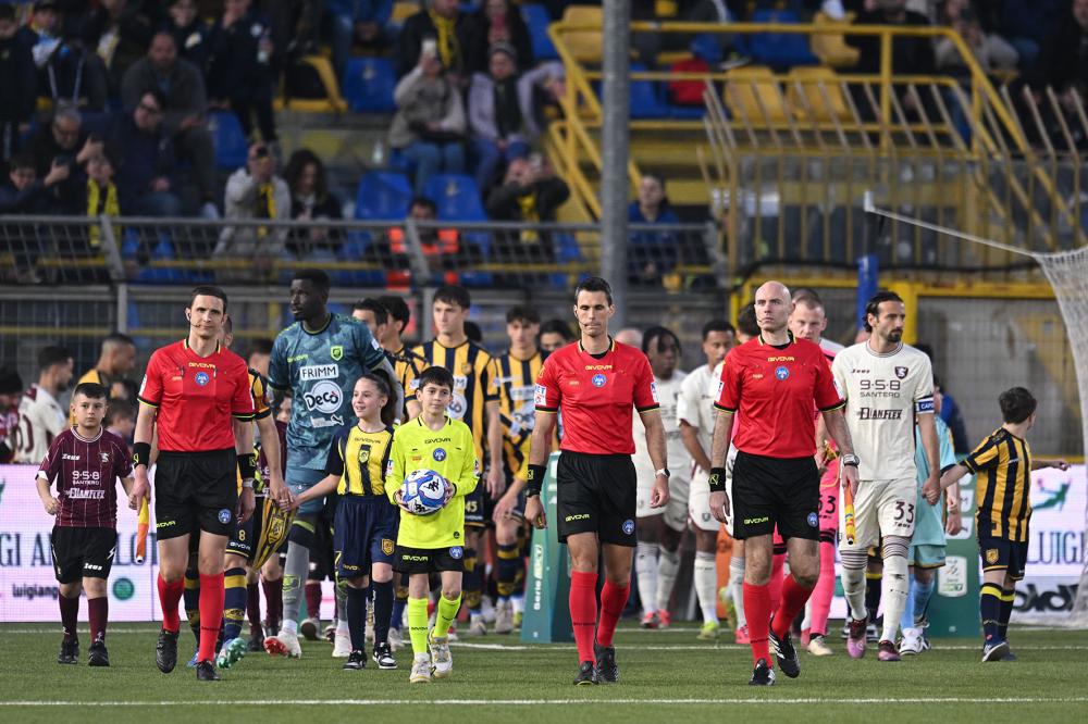 Castellamare di Stabia, 05.04.2025 - Juve Stabia - Salernitana / Campionato Serie B 2024-25 / foto Nicola Ianuale Nella foto: le squadre entrano in campo