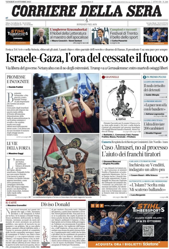 Le prime pagine dei quotidiani italiani e stranieri di oggi, venerdì 10 ottobre