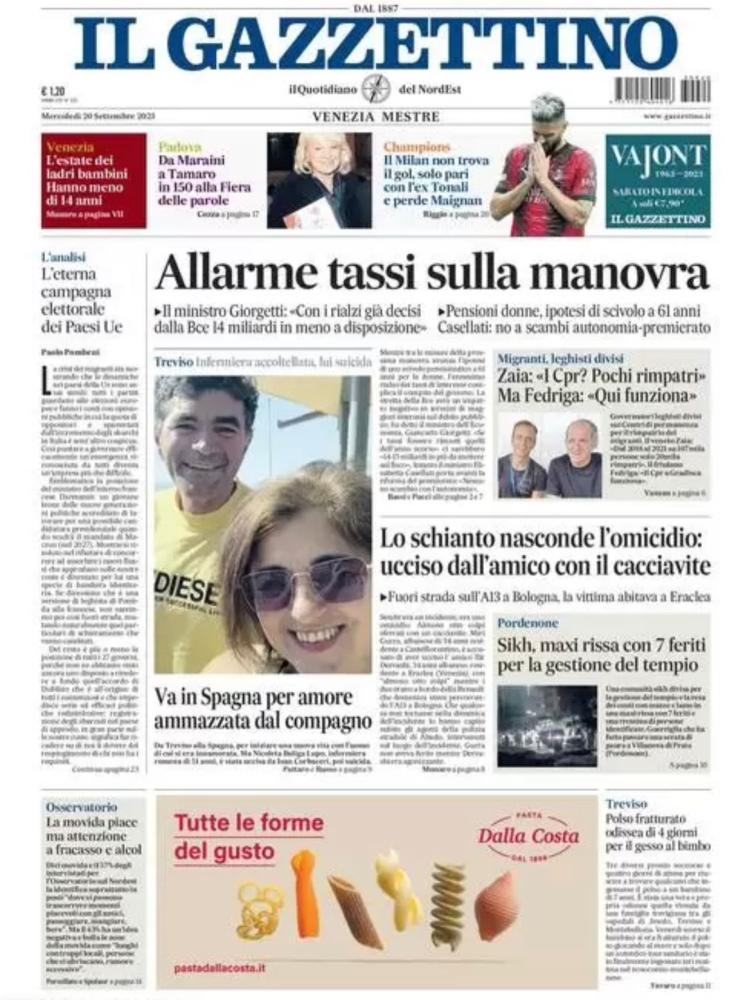 "Milan, un'altra delusione. Che spreco contro l'ex Tonali". Così in apertura oggi Il Giornale, che dedica spazio in taglio alto al pareggio del Milan contro il Newcastle nella prima giornata del girone di Champions League. Un pari amaro secondo il quotidiano, vista anche la mole di occasioni create dai rossoneri di Stefano Pioli contro l'ex Sandro Tonali.