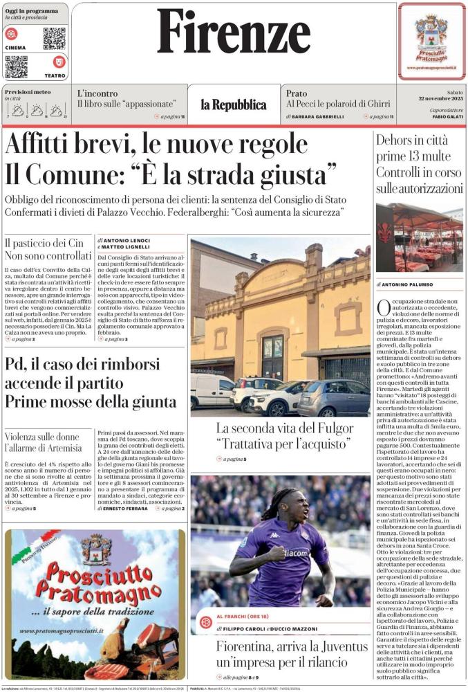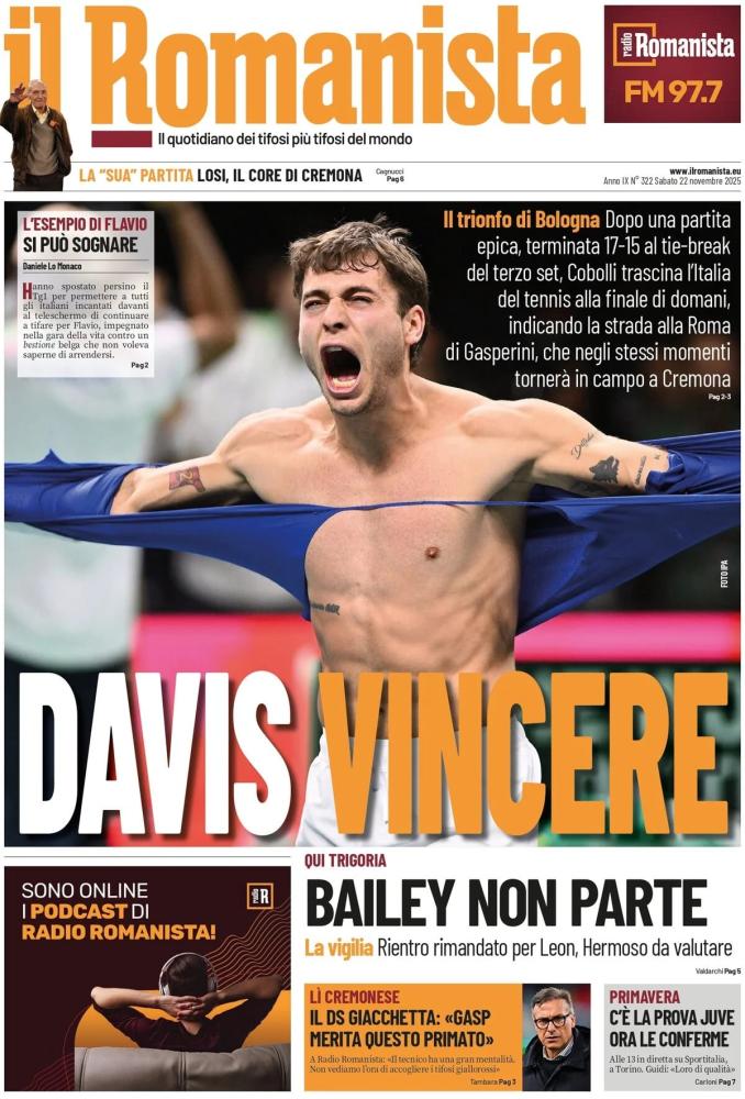 Il ritorno del campionato di Serie A con il derby di Milano e le altre sfide della 12esima giornata, è uno degli argomenti principali sulle prime pagine dei quotidiani in edicola oggi, sabato 22 novembre 2025, e che vi proponiamo in calce. Spazio poi alle dichiarazioni di Luciano Spalletti, tecnico della Juventus, che ha parlato in conferenza stampa alla vigilia del match con la Fiorentina e spazio anche al ritorno in campo del Napoli con Antonio Conte atteso dalla sfida contro la nuova Atalanta di Raffaele Palladino.