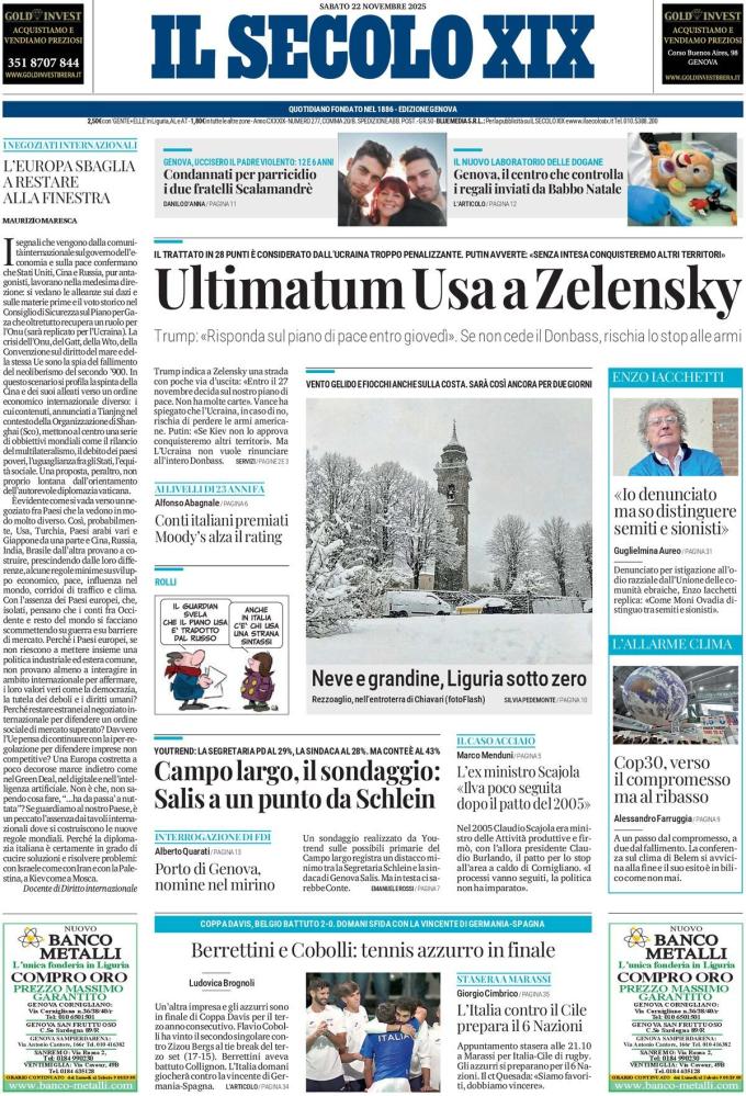 Le prime pagine dei quotidiani italiani e stranieri di oggi, sabato 22 novembre