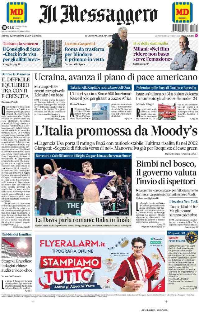 Le prime pagine dei quotidiani italiani e stranieri di oggi, sabato 22 novembreTUTTO mercato WEB