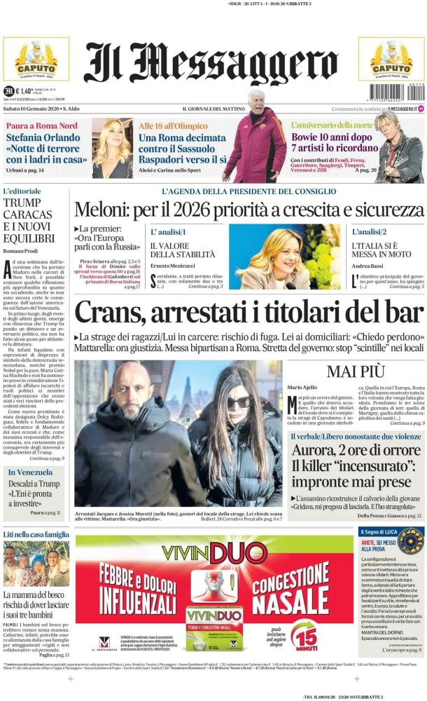 Le prime pagine dei quotidiani italiani e stranieri di oggi, sabato 10 gennaio
