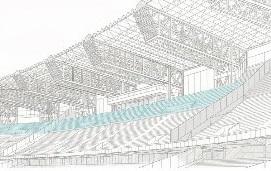 Il progetto prevede anche l’ampliamento della copertura dello stadio, che proteggerà una superficie più ampia delle gradinate dagli agenti atmosferici, migliorando il comfort degli spettatori soprattutto nei settori più esposti.