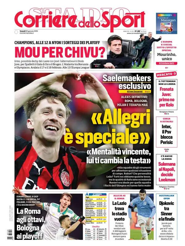 "Allegri è speciale". Il Corriere dello Sport apre con le parole di Saelemaekers