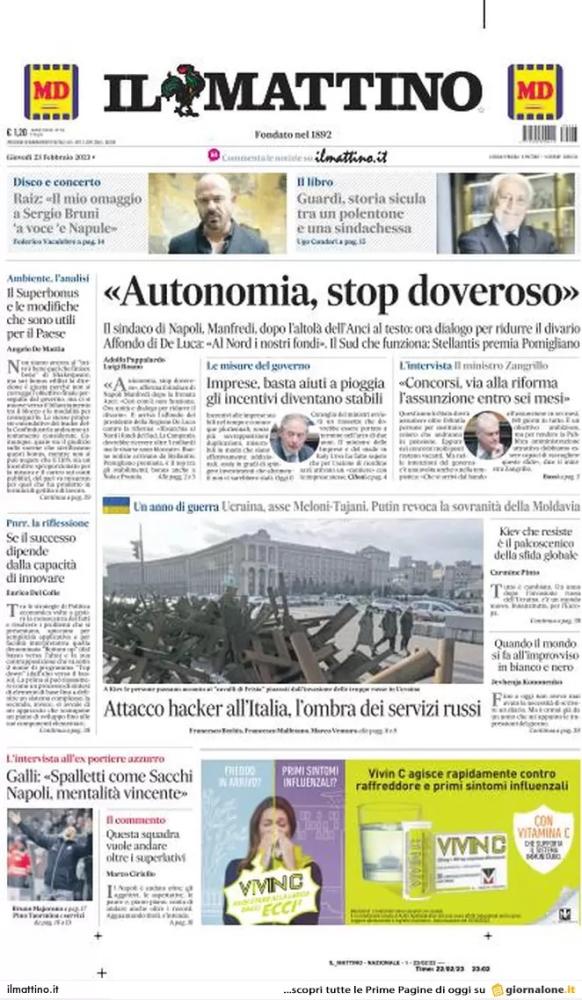 L’edizione odierna de Il Mattino sceglie di aprire in prima pagina con le parole dell’ex portiere, tra le altre, del Napoli Giovanni Galli. “Spalletti come Sacchi. Napoli, mentalità vincente” le parole sui partenopei da parte dell’ex calciatore riportate dal quotidiano.