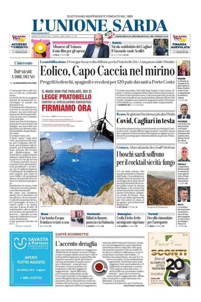 Si parla di calcio oggi in prima pagina - e, nello specifico, in taglio alto - su L'Unione Sarda, con il titolo riportato di seguito: "Nicola soddisfatto del Cagliari. Il Sassuolo vuole Scuffet".