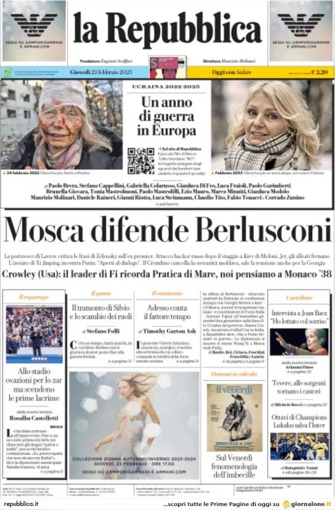 “Ottavi di Champions, Lukaku salva l’Inter” titola in prima pagina l’edizione odierna de La Repubblica. Il quotidiano si sofferma sul trionfo per 1-0 ottenuto dai nerazzurri, ieri a San Siro, contro i portoghesi nella gara valida per l’andata degli ottavi di Champions League.
