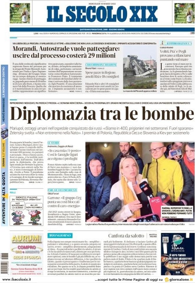 "Speranza e passione" è il titolo che apre la sezione sportiva de Il Secolo XIX in edicola stamane. Il riferimento è alla delicata situazione del Genoa, che malgrado una classifica complicata continua a credere alla salvezza. I tifosi danno la carica ai rossoblù, il tecnico ha ridato vigore alla squadra e trasmette entusiasmo: "E ora vediamo serietà e programmazione".