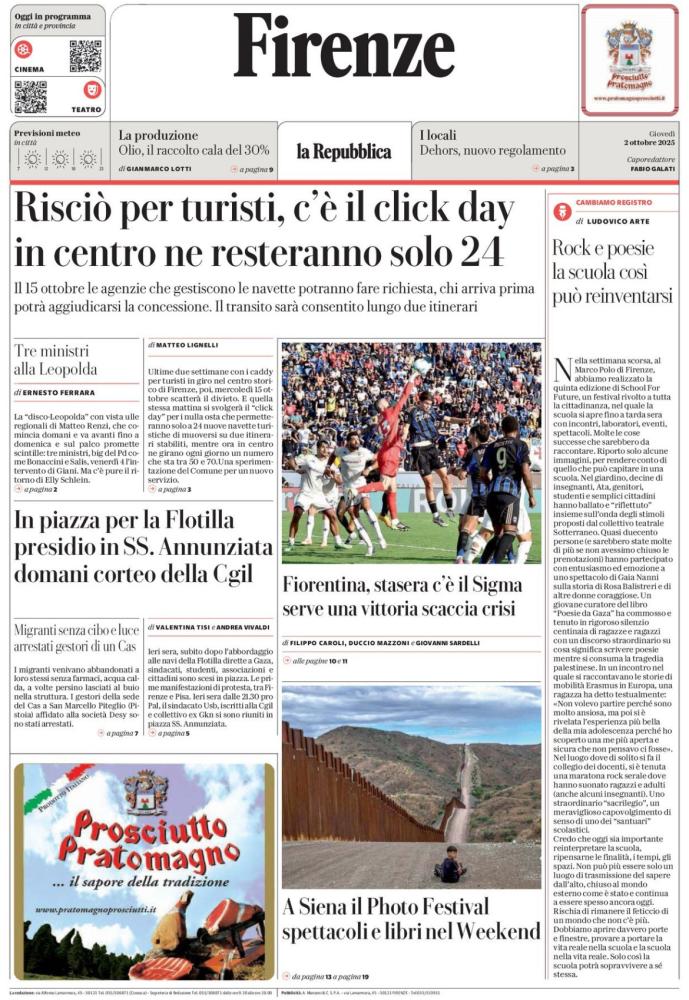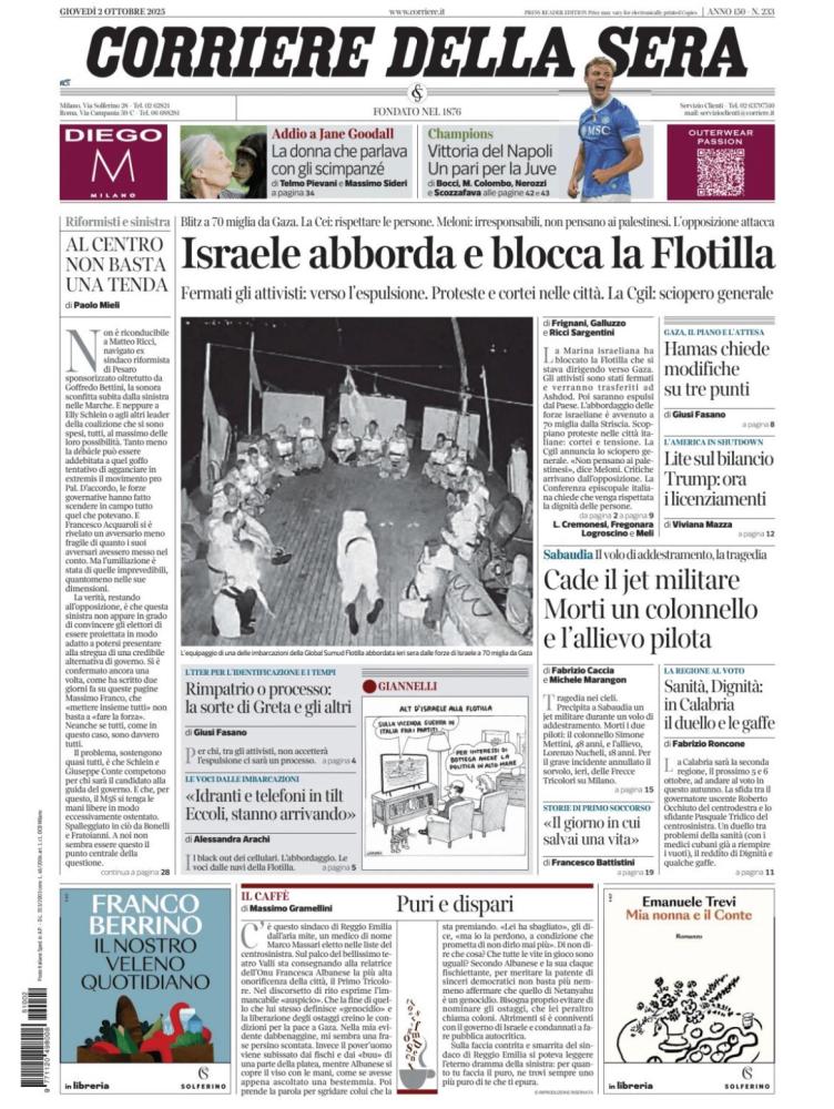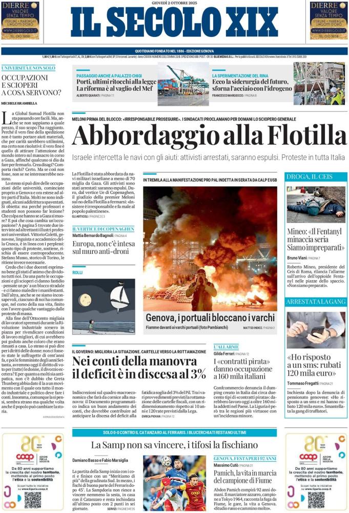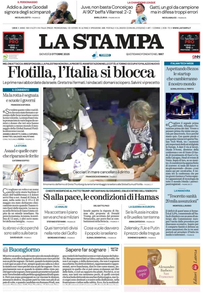 Le aperture dei quotidiani italiani e stranieri di oggi, giovedì 2 ottobre