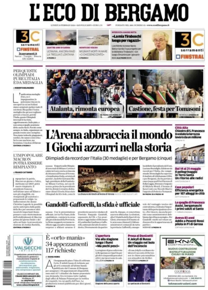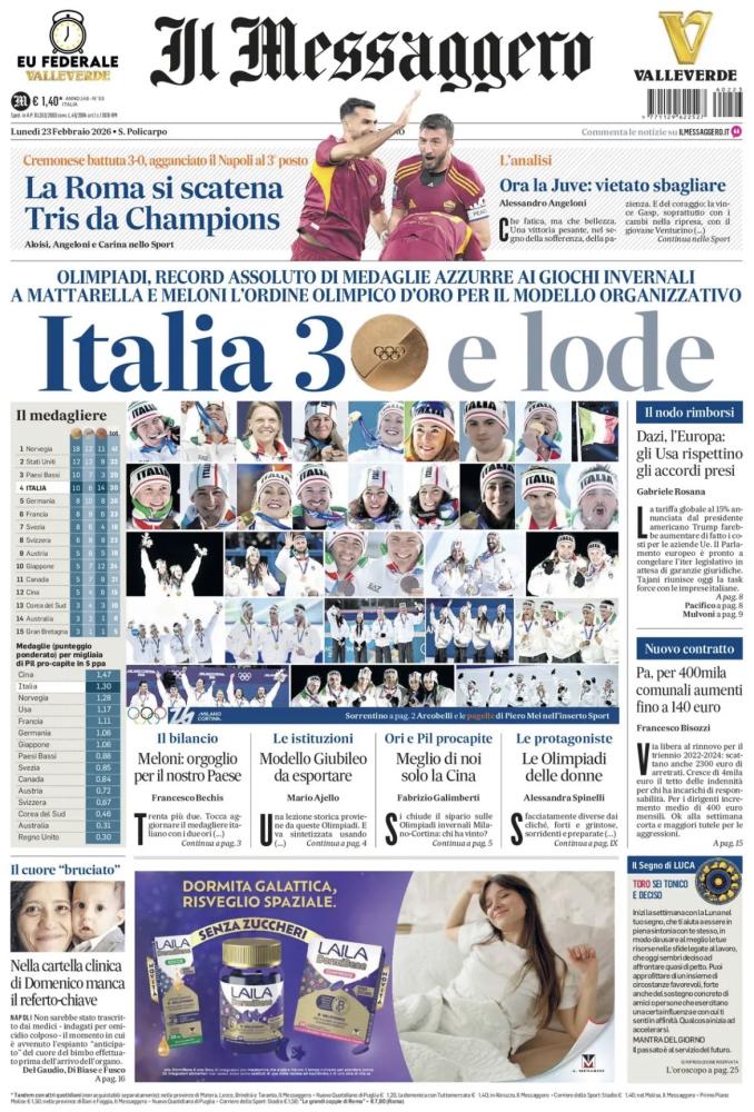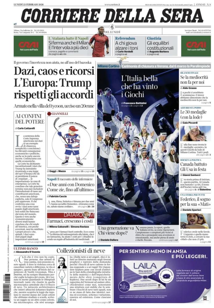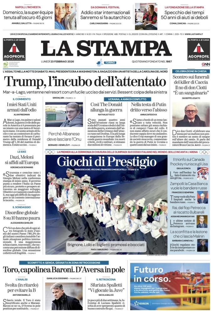Le aperture dei quotidiani italiani e stranieri di oggi, lunedì 23 febbraio