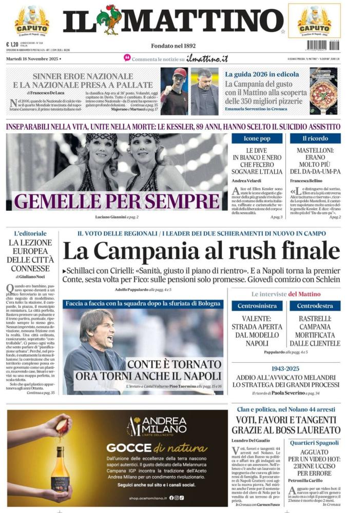 Le prime pagine dei principali quotidiani sportivi di quest’oggi, mercoledì 18 novembre, trattano soprattutto il ritorno in campo della dodicesima giornata di Serie A, che partirà sabato pomeriggio alle ore 15:00 con Cagliari Genoa e Udinese Bologna e terminerà lunedì sera con Sassuolo-Pisa.