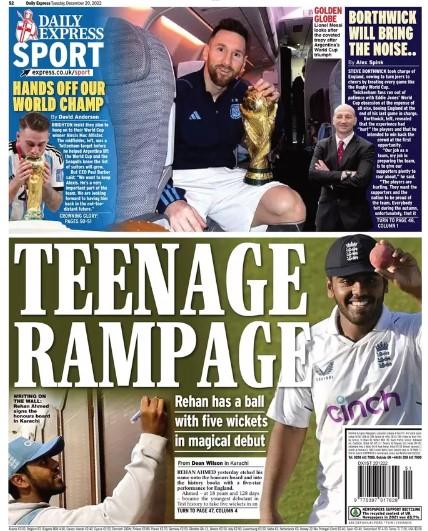 Di seguito le aperture inglesi di oggi, martedì 20 dicembre: