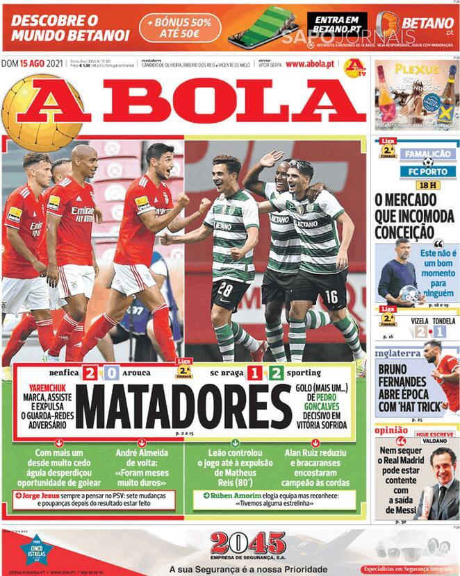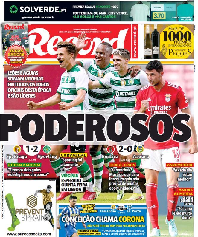 Ecco le aperture dei principali quotidiani sportivi portoghesi, in edicola questa mattina.