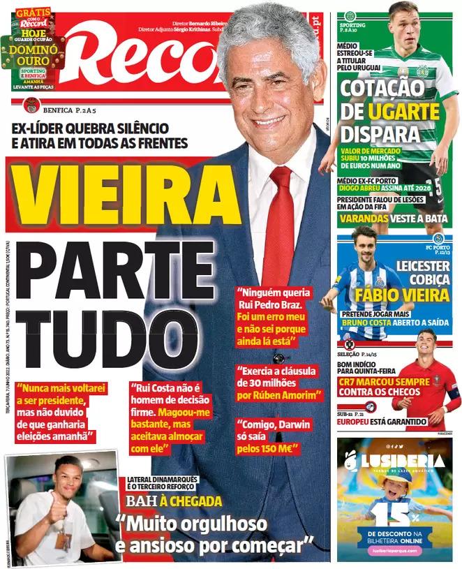 Spazio anche qui alle dichiarazioni di Vieira: "Non tornerei mai a fare il presidente del Benfica, ma non ho dubbi sul fatto che se le elezioni si tenessero domani le vincerei".
