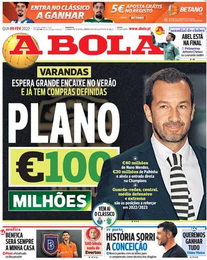Le aperture portoghesi di oggi, mercoledì 09 febbraio 2022.