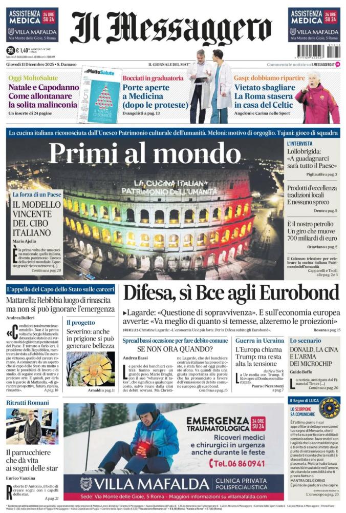 Le prime pagine dei quotidiani italiani e stranieri di oggi, giovedì 11 dicembre