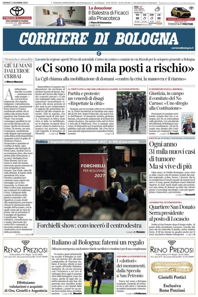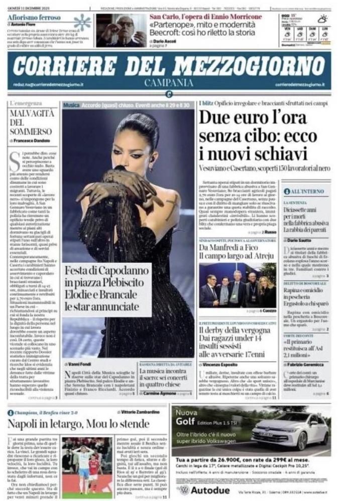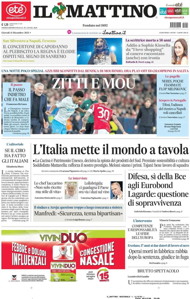 Si parla soprattutto di Champions League nelle prime pagine proposte in edicola oggi, giovedì 11 dicembre 2025. I principali giornali sportivi italiani si concentrano sui risultati delle italiane nella sesta giornata della League Phase partendo dalla Juventus: i bianconeri superano 2-0 il Pafos con le reti di McKennie e David e ottengono tre punti importanti che avvicinano l'obiettivo playoff. Sconfitta pesante, invece, per il Napoli: Conte va ko 2-0 al Da Luz contro il Benfica di Mourinho e resta al 23esimo posto.