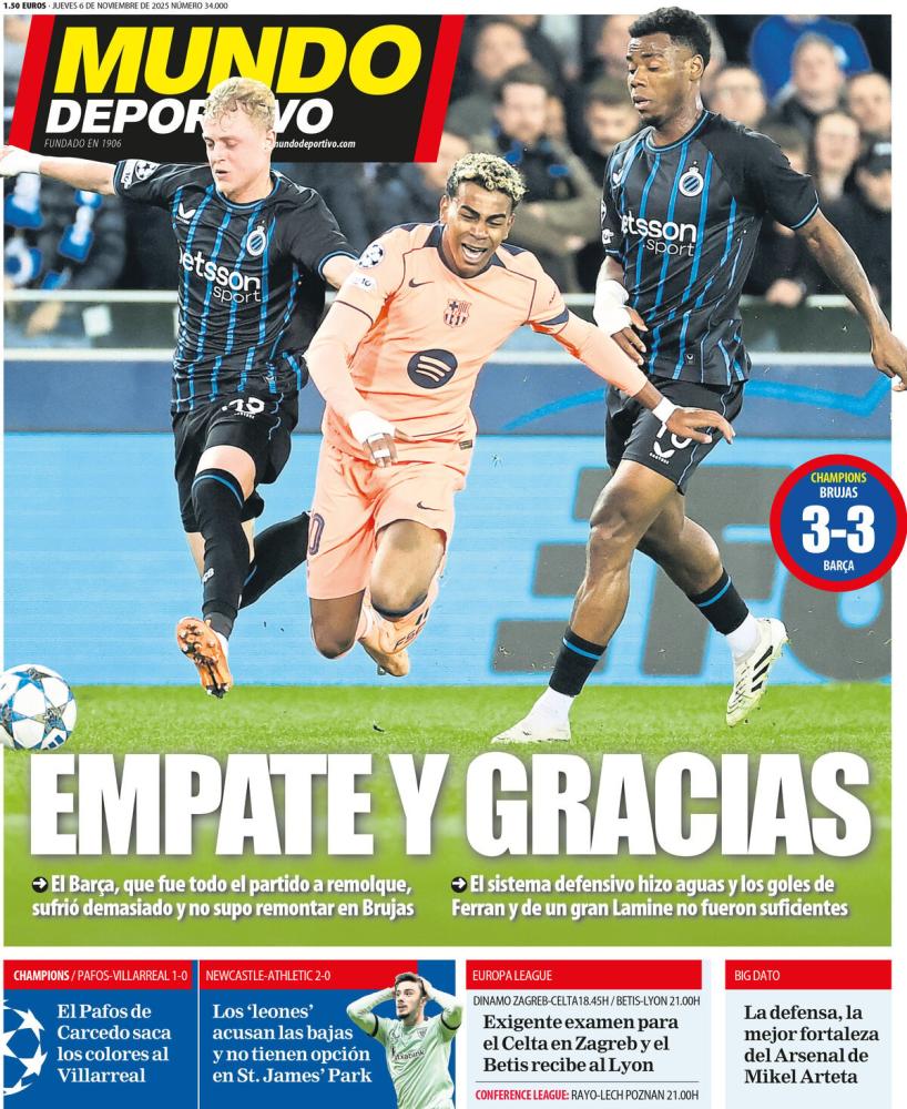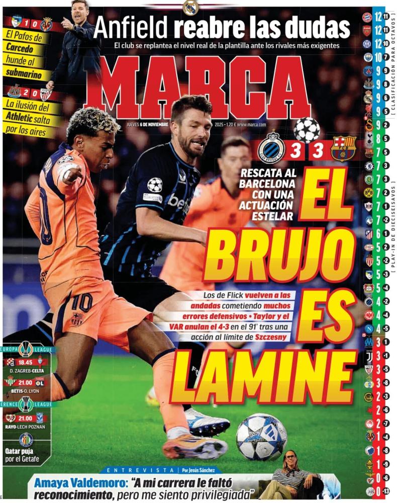 Sono le due vittorie delle italiane di ieri a finire sulle prime pagine dei principali quotidiani sportivi e non di oggi, giovedì 6 novembre. In primis l'Inter di Cristian Chivu, che trova la quarta meraviglia di fila nonostante una prestazione non troppo convincente con il Kairat Almaty (2-1) e scala al terzo posto della classifica unica di Champions League. L'Atalanta invece genera un maremoto di applausi a Bergamo dopo la performance sfoggiata al Velodrome, in casa dell'Olympique Marsiglia, strappando dalle mani di Roberto De Zerbi il successo per 1-0 al 90' con l'arcobaleno disegnato da Samardzic.