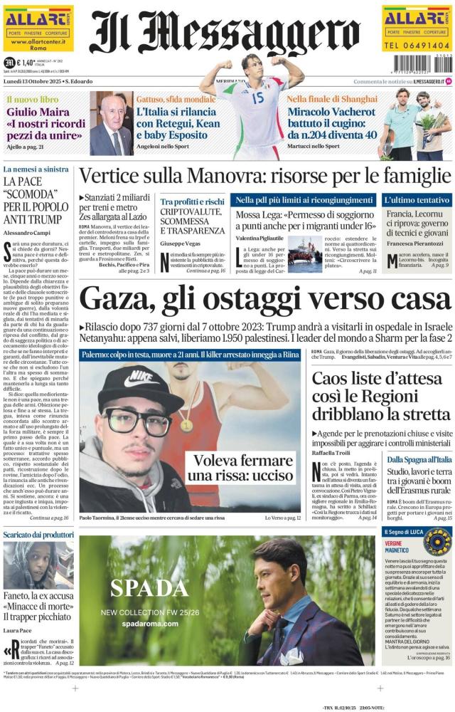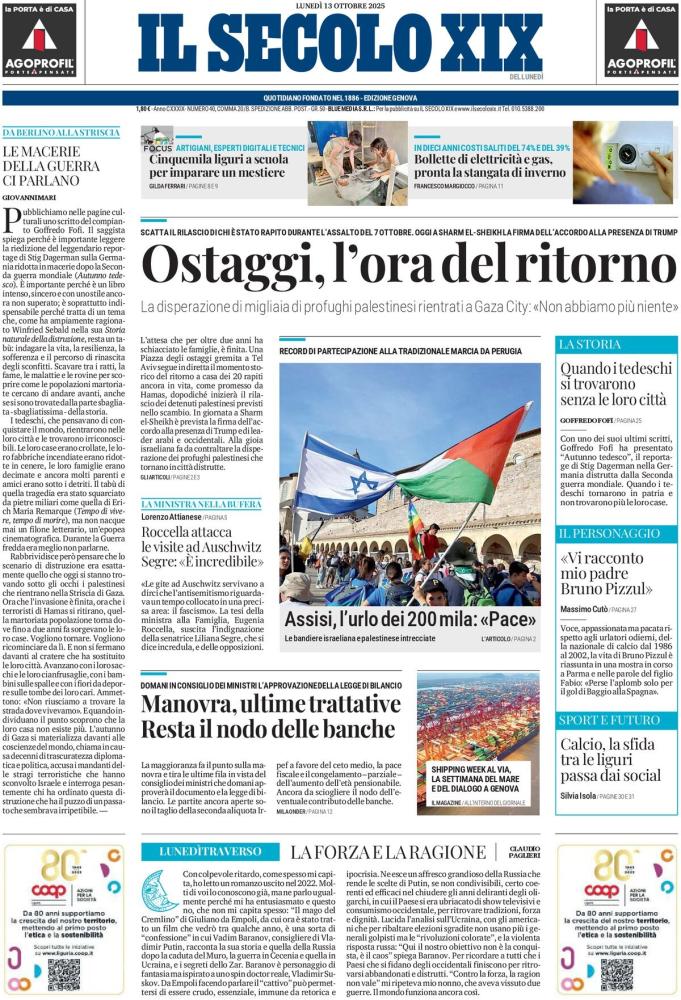 Le prime pagine dei quotidiani italiani e stranieri di oggi, lunedì 13 ottobre