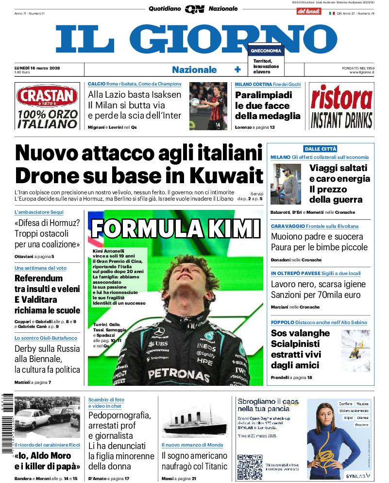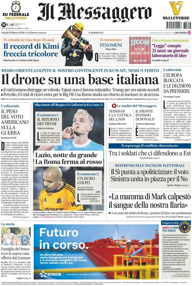 Le prime pagine dei quotidiani italiani e stranieri di oggi, lunedì 16 marzo