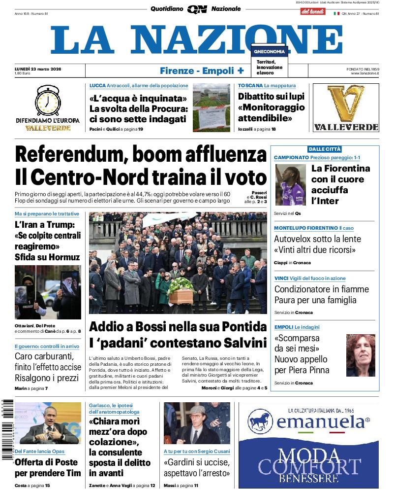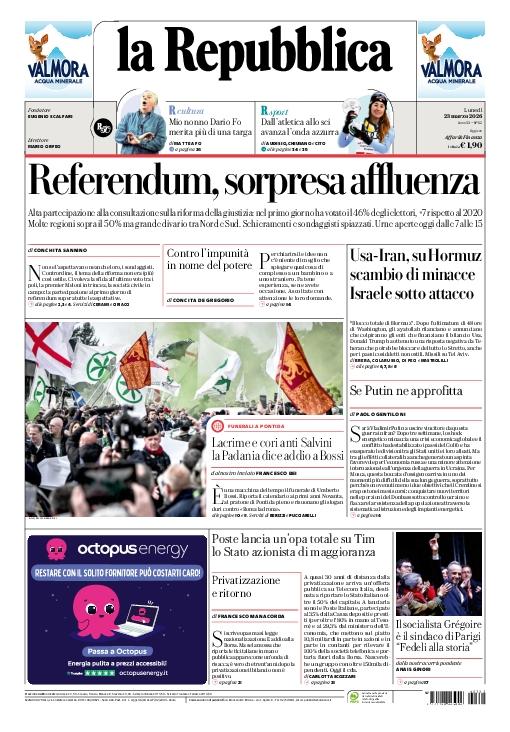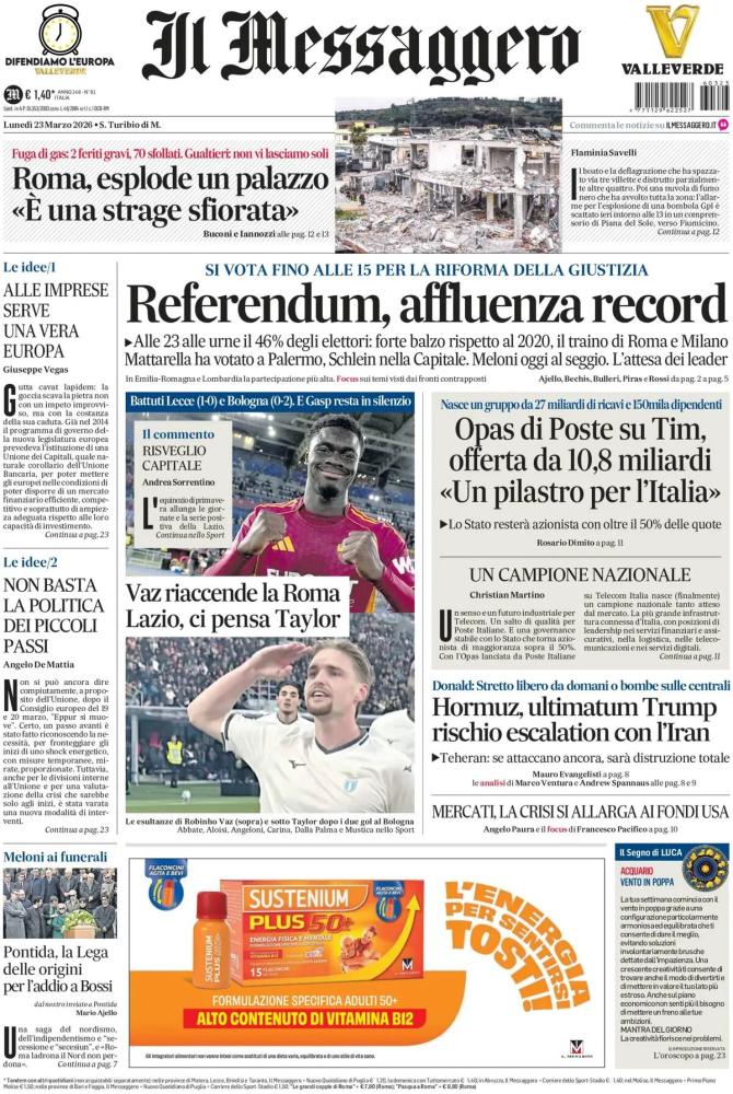 Le prime pagine dei quotidiani italiani e stranieri di oggi, lunedi 23 marzo