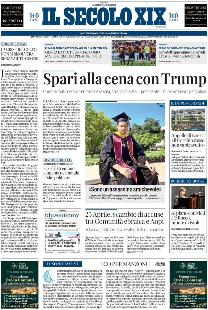 Le prime pagine dei quotidiani italiani e stranieri di oggi, lunedì 27 aprile