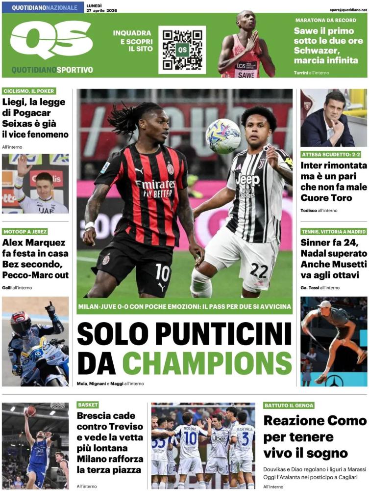 Lo Scudetto che si avvicina sempre più sulle maglie dell'Inter è uno degli argomenti principali trattato quest'oggi, lunedì 27 aprile 2026, sulle prime pagine dei quotidiani. Nonostante il 2-2 in casa del Torino, i nerazzurri sono ormai a un passo dalla vittoria del Tricolore: già nel prossimo weekend la squadra di Chivu potrebbe festeggiare il titolo.