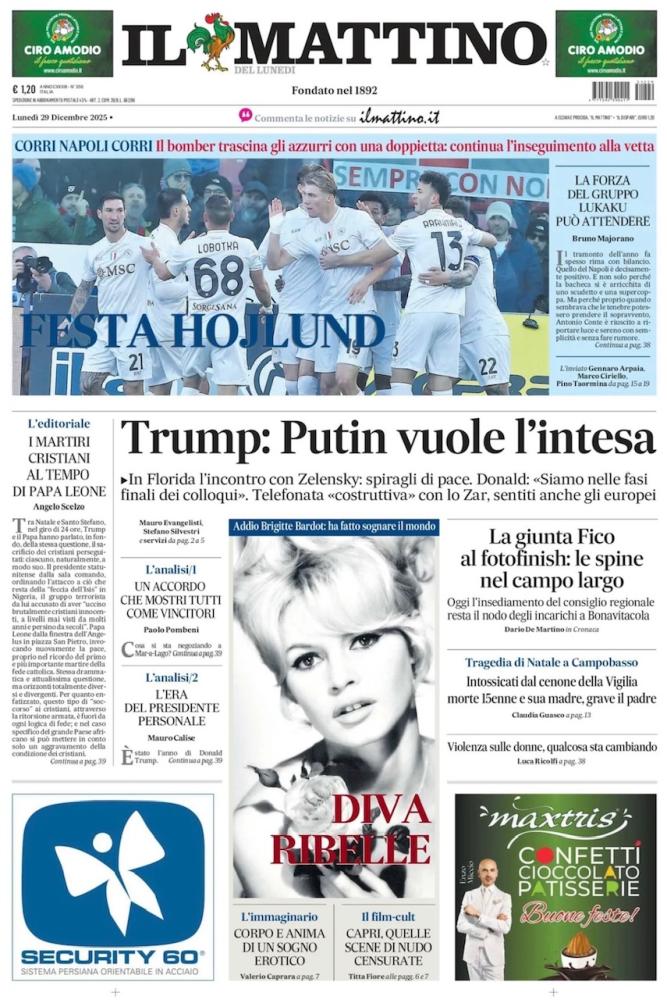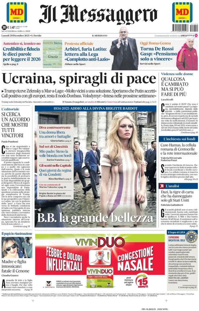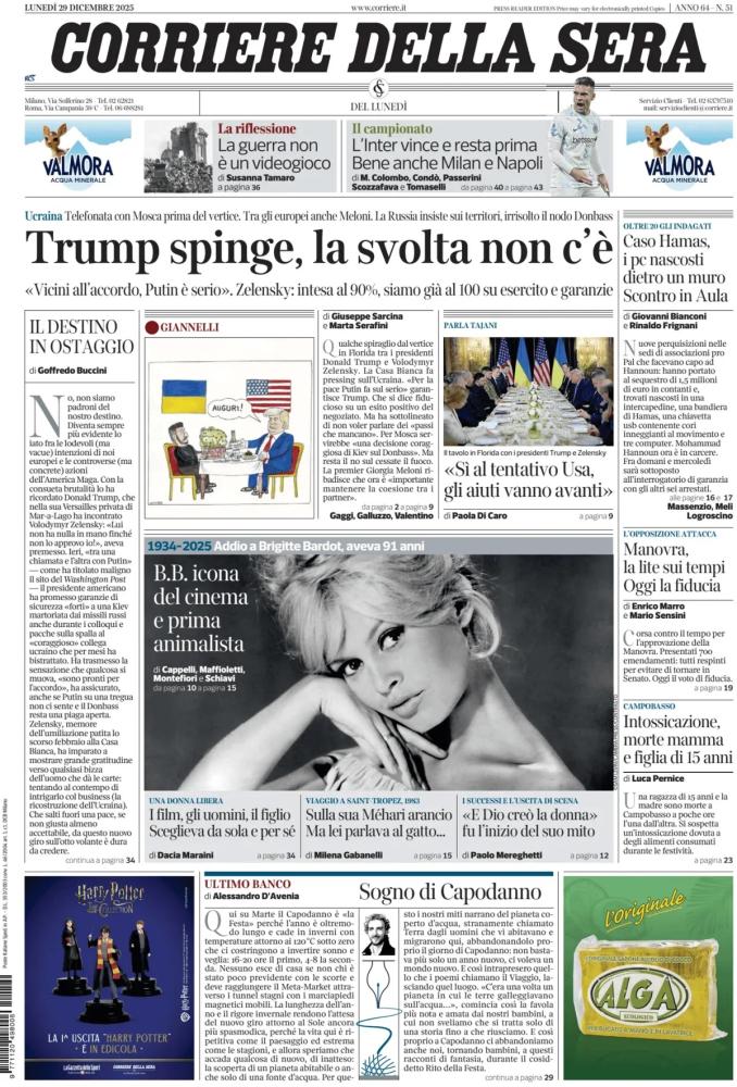 Le prime pagine dei quotidiani italiani e stranieri di oggi, lunedì 29 dicembre