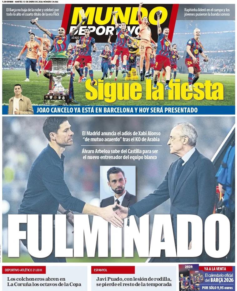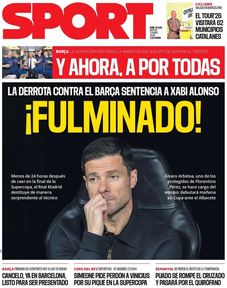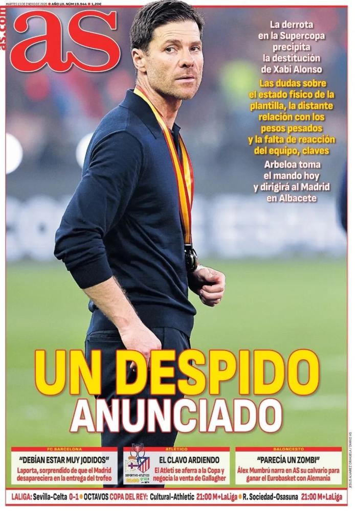 Dall'estero invece rimbalzano con veemenza i retroscena a proposito dell'uscita di Xabi Alonso dal Real Madrid subito dopo la sconfitta in finale di Supercoppa di Spagna contro il Barcellona. Al suo posto in panchina è salito Alvaro Arbeloa.