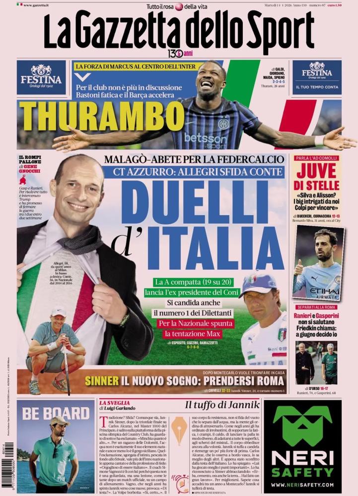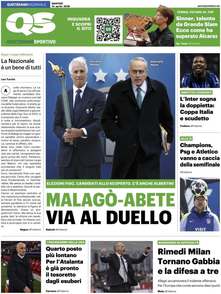 Malagò-Abete per la Federcalcio, Allegri-Conte per la panchina della Nazionale: duelli in vista per il futuro del calcio italiano. La Serie A compatta con 19 voti su 20 (solo Lotito non ha votato) lancia Malagò mentre Abete chiederà alla Lega Nazionale Dilettanti di candidarlo. Per la panchina è duello tra l'allenatore del Milan e l'allenatore del Napoli.