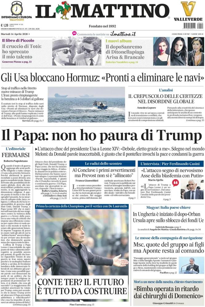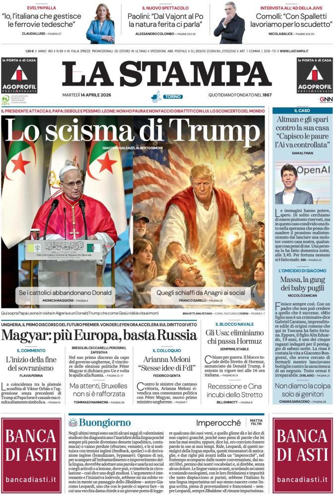 Le prime pagine dei quotidiani italiani e stranieri di oggi, martedì 14 aprile