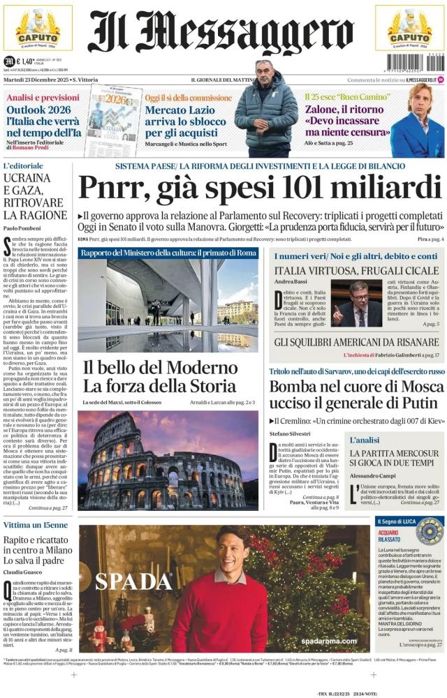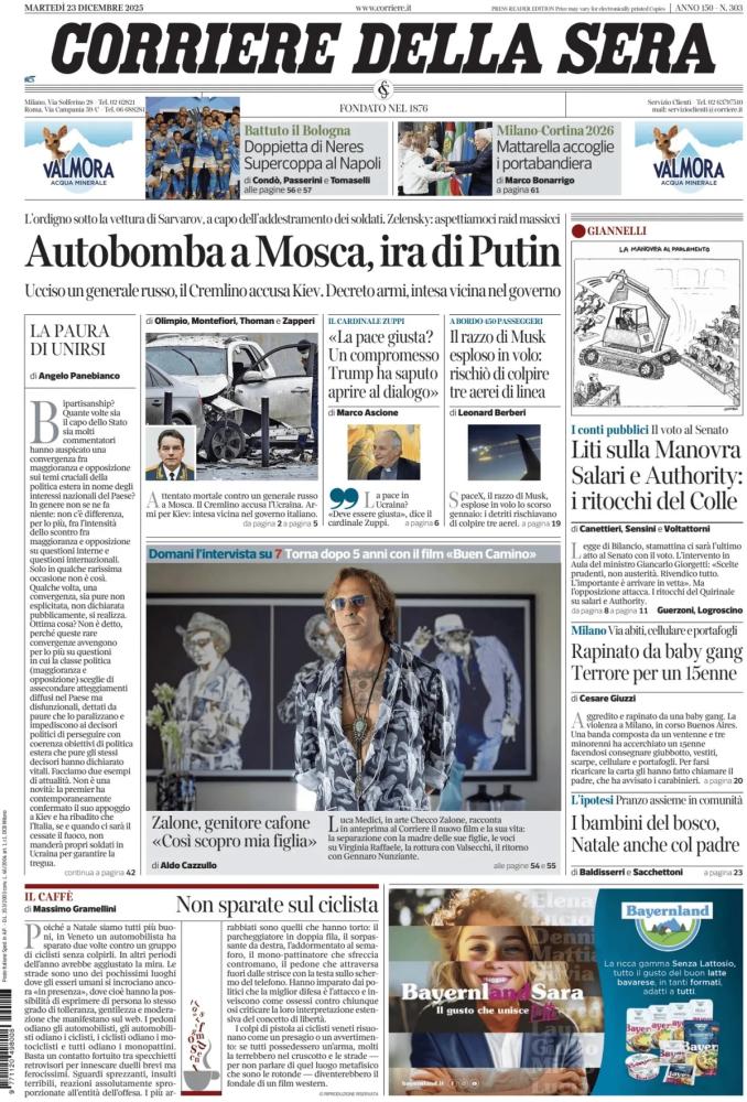 Le prime pagine dei quotidiani italiani e stranieri di oggi, martedì 23 dicembre