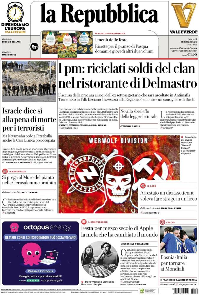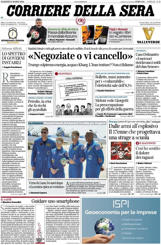 Le prime pagine dei quotidiani italiani e stranieri di oggi, martedì 31 marzo